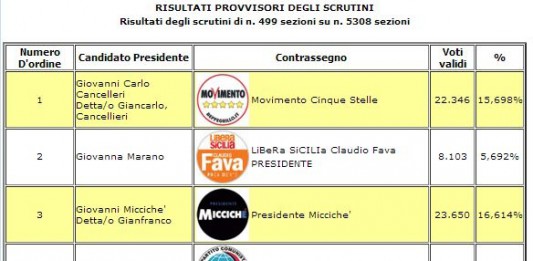 1 Giovanni Carlo Cancelleri Detta/o Giancarlo, Cancellieri Movimento Cinque Stelle 8.798 15,054% 2 Giovanna Marano LiBeRa SiCILIa Claudio Fava PRESIDENTE 2.543 4,351% 3 Giovanni...